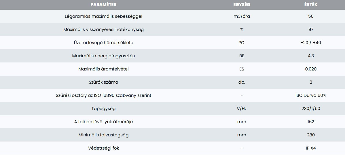 - energiatakarékos EC ventilátorok sebességszabályozással, - átlátszó , érintőgombos fedélzeti kijelző, - 97%-os hatásfokú kerámia hőcserélő , - ISO Coarse 60%-os osztályú szűrők mindkét oldalon a bejövő levegő tisztítására, valamint a hőcserélő és a ventilátor védelmére, - infravörös távirányító , - hangszigetelés a külső zajok ellen, - hangszigetelő anyaggal ellátott műanyag cső , - be- és kimeneti rácsok, - automatikusan nyíló szélcsillapító, - alkonyszenzor az automatikus éjszakai fényerő-szabályozáshoz, - páratartalom-érzékelő a szellőztetés automatikus aktiválásához a környezeti páratartalom alapján, - Wi-Fi csatlakozási lehetőség.